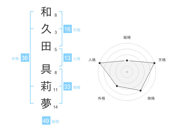和久田 具莉夢さんを姓名の画数から五運を鑑定
