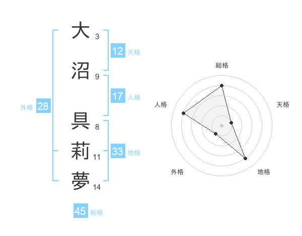 大沼 具莉夢さんを姓名の画数から五運を鑑定