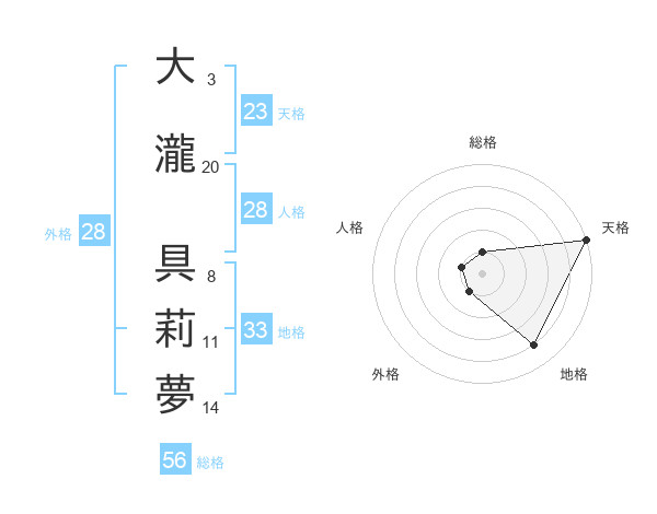 大瀧 具莉夢さんを姓名の画数から五運を鑑定
