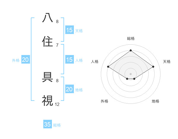 八住 具視さんの地格は20画の1点!