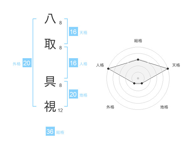 八取 具視さんの天格は16画の5点!