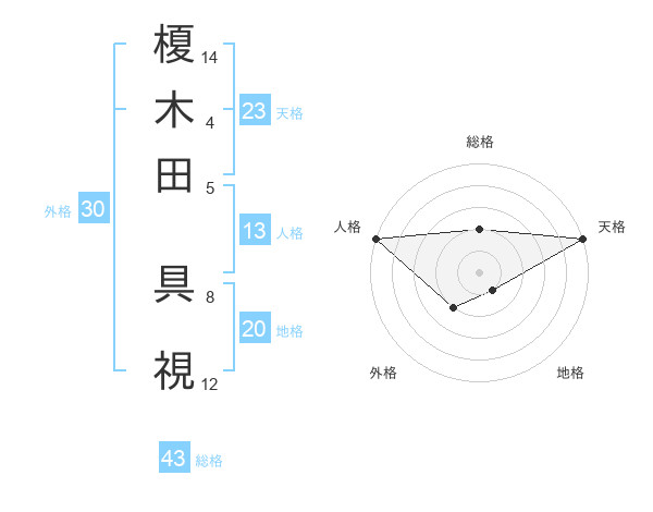 榎木田 具視さんの天格は23画の5点!