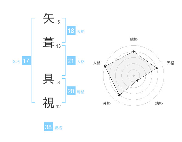 矢葺 具視さんの総格は38画の4点!