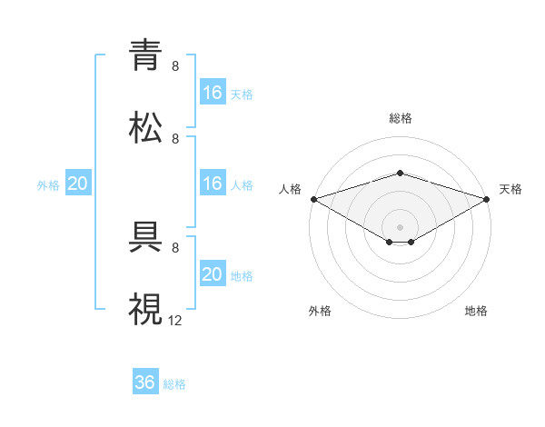 青松 具視さんの天格は16画の5点!