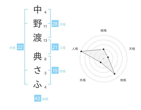 中野渡 典さふさんを姓名の画数から五運を鑑定