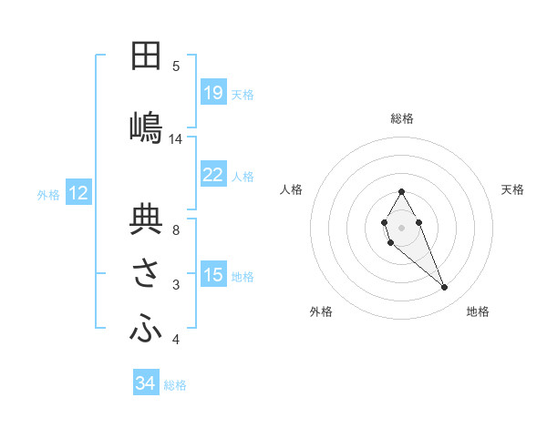 田嶋 典さふさんの天格は19画の1点!
