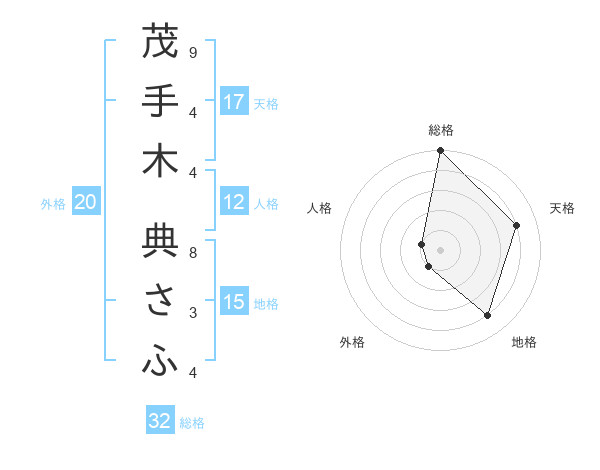 茂手木 典さふさんの天格は17画の4点!