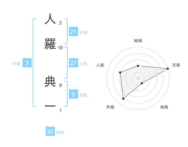 人羅 典一さんの天格は21画の5点!