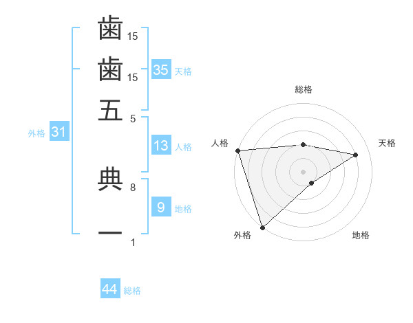歯歯五 典一さんの総格は44画の2点!