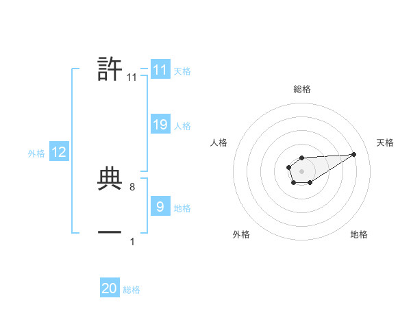許 典一さんの総格は20画の1点!