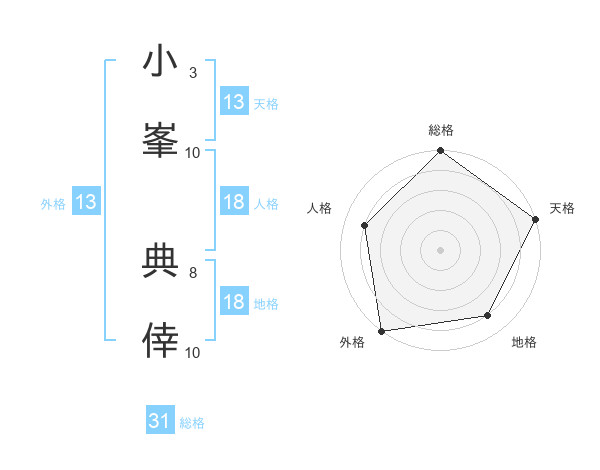 小峯 典倖さんを姓名の画数から五運を鑑定