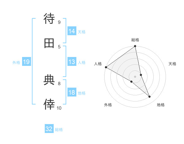 待田 典倖さんの総格は32画の5点!