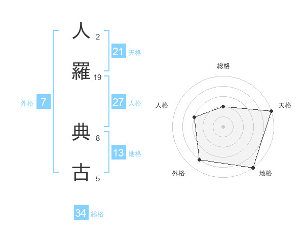 人羅 典古さんの天格は21画の5点!
