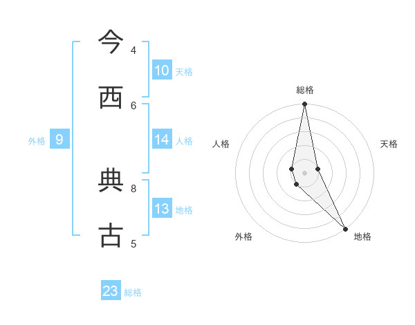 今西 典古さんの総格は23画の5点!