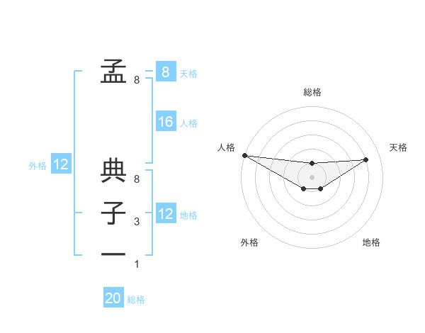 孟 典子一さんの総格は20画の1点!