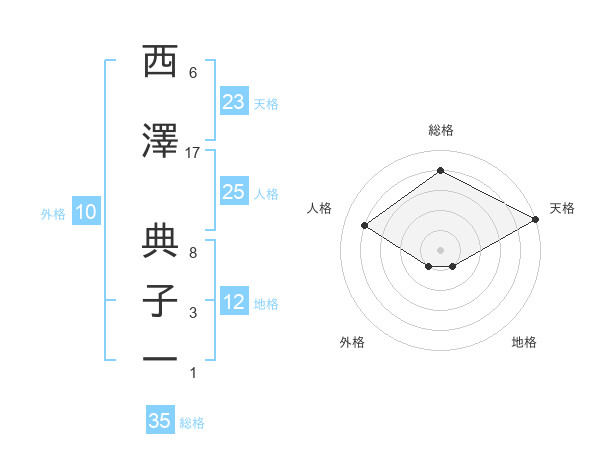 西澤 典子一さんを姓名の画数から五運を鑑定