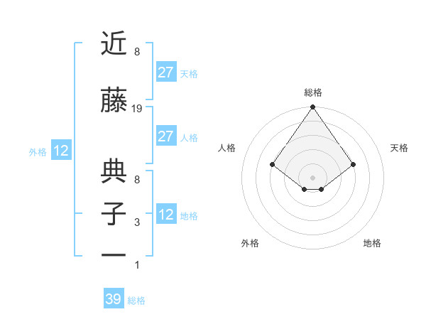 近藤 典子一さんを姓名の画数から五運を鑑定