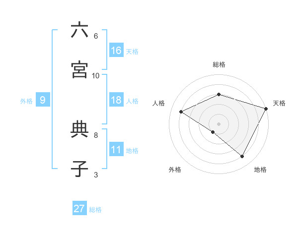 六宮 典子さんの天格は16画の5点!