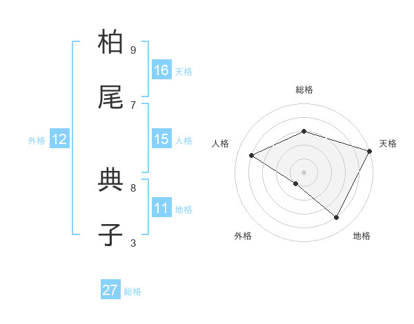 柏尾 典子さんの総格は27画の3点!