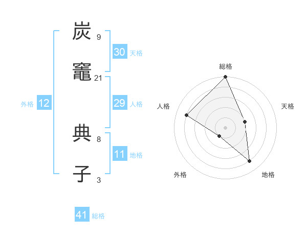 炭竈 典子さんを姓名の画数から五運を鑑定