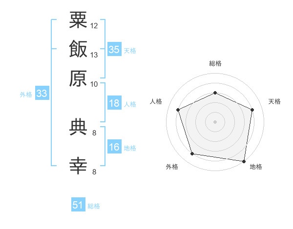粟飯原 典幸さんの総格は51画の3点!