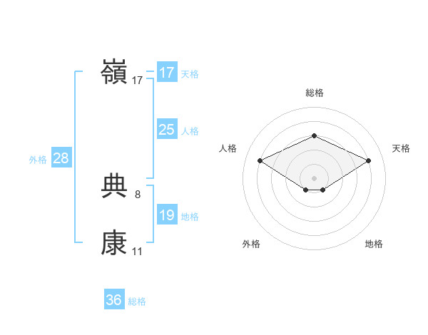 嶺 典康さんの天格は17画の4点!