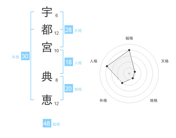 宇都宮 典恵さんを姓名の画数から五運を鑑定