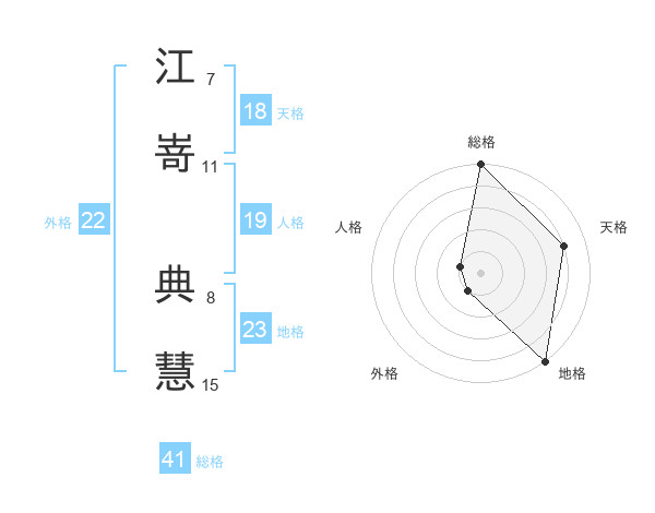 江嵜 典慧さんの外格は22画の1点!