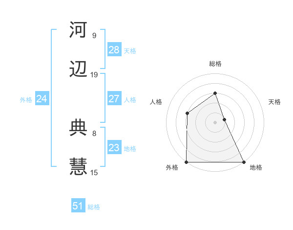 河辺 典慧さんの総格は51画の3点!