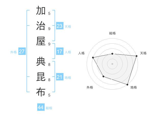 加治屋 典昆布さんを姓名の画数から五運を鑑定