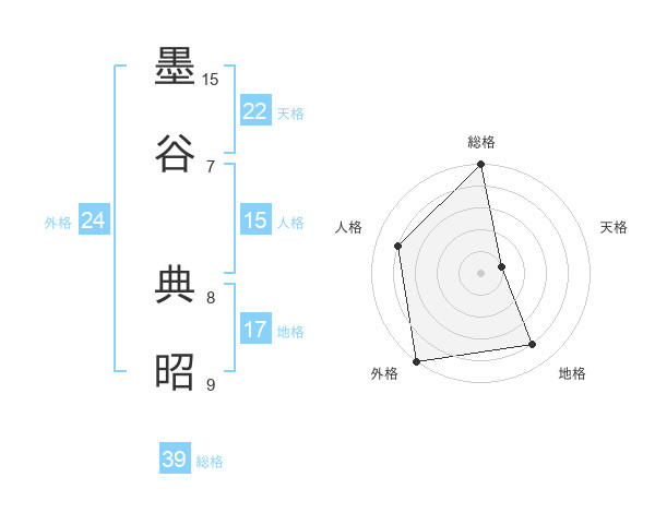 墨谷 典昭さんの総格は39画の5点!
