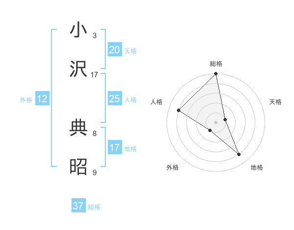 小沢 典昭さんの総格は37画の5点!