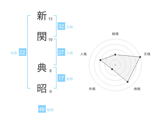 新関 典昭さんの総格は49画の2点!
