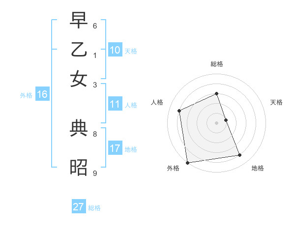 早乙女 典昭さんの総格は27画の3点