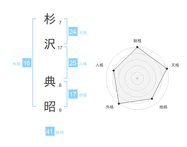 杉沢 典昭さんの天格は24画の5点!