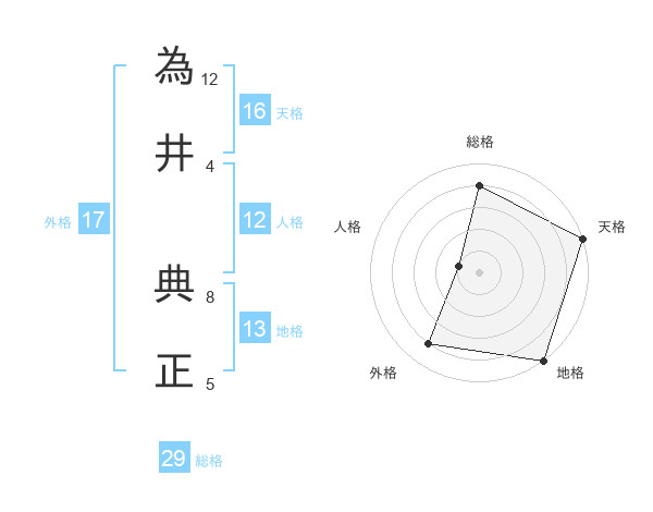 為井 典正さんの総格は29画の4点!