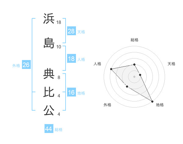 浜島 典比公さんを姓名の画数から五運を鑑定