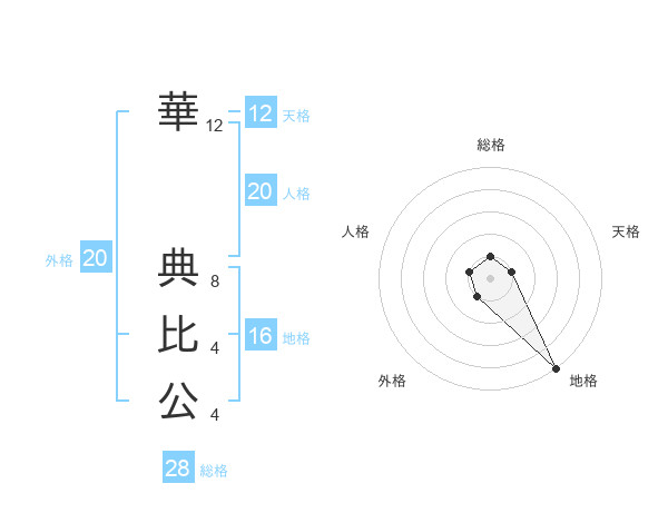華 典比公さんの総格は28画の1点!
