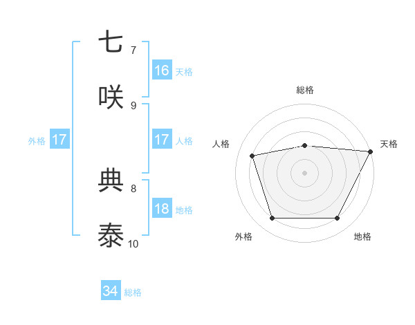 七咲 典泰さんの総格は34画の2点!