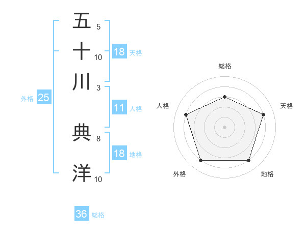 五十川 典洋さんを姓名の画数から五運を鑑定