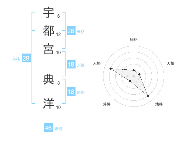 宇都宮 典洋さんを姓名の画数から五運を鑑定
