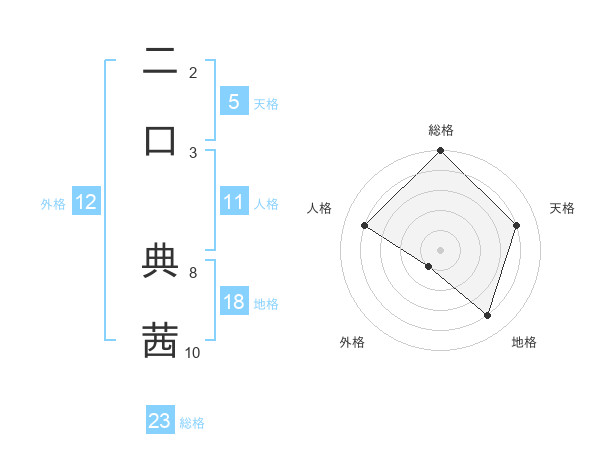 二口 典茜さんの総格は23画の5点!