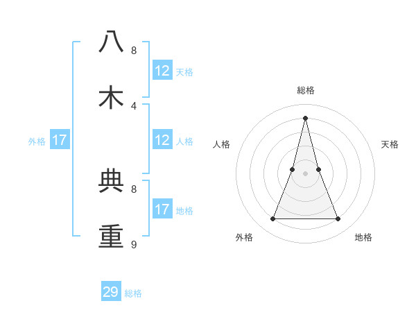 八木 典重さんの総格は29画の4点!