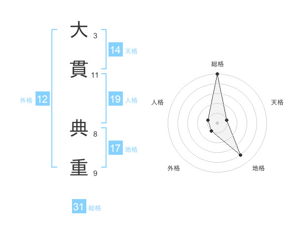 大貫 典重さんを姓名の画数から五運を鑑定