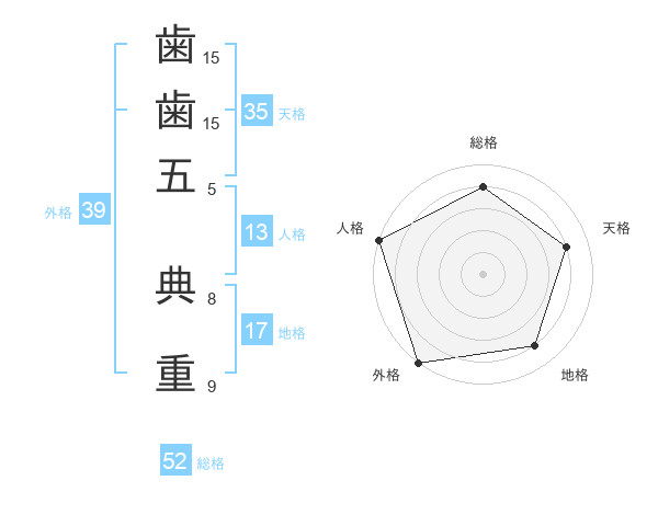 歯歯五 典重さんの総格は52画の4点!