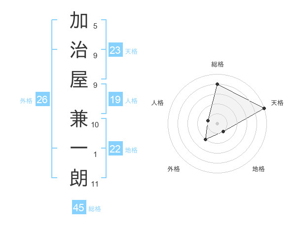 加治屋 兼一朗さんの総格は45画の4点