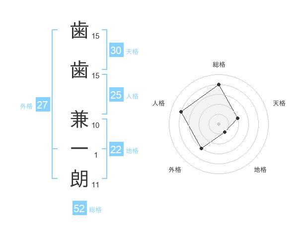 歯歯 兼一朗さんの総格は52画の4点!