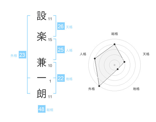 設楽 兼一朗さんを姓名の画数から五運を鑑定