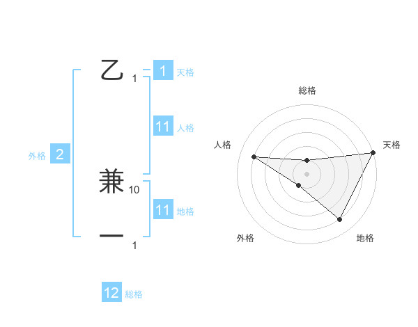 乙 兼一さんの地格は11画の4点!