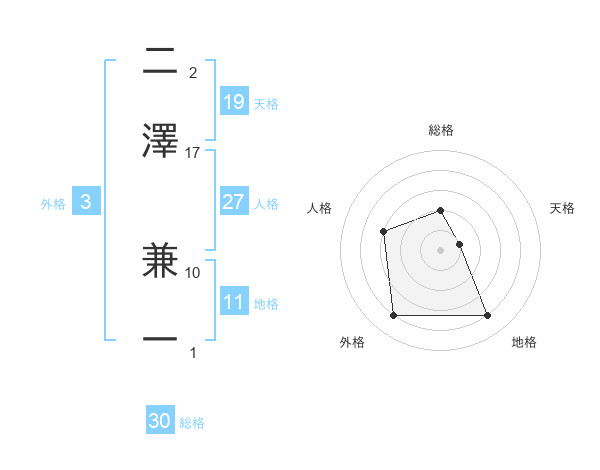 二澤 兼一さんを姓名の画数から五運を鑑定